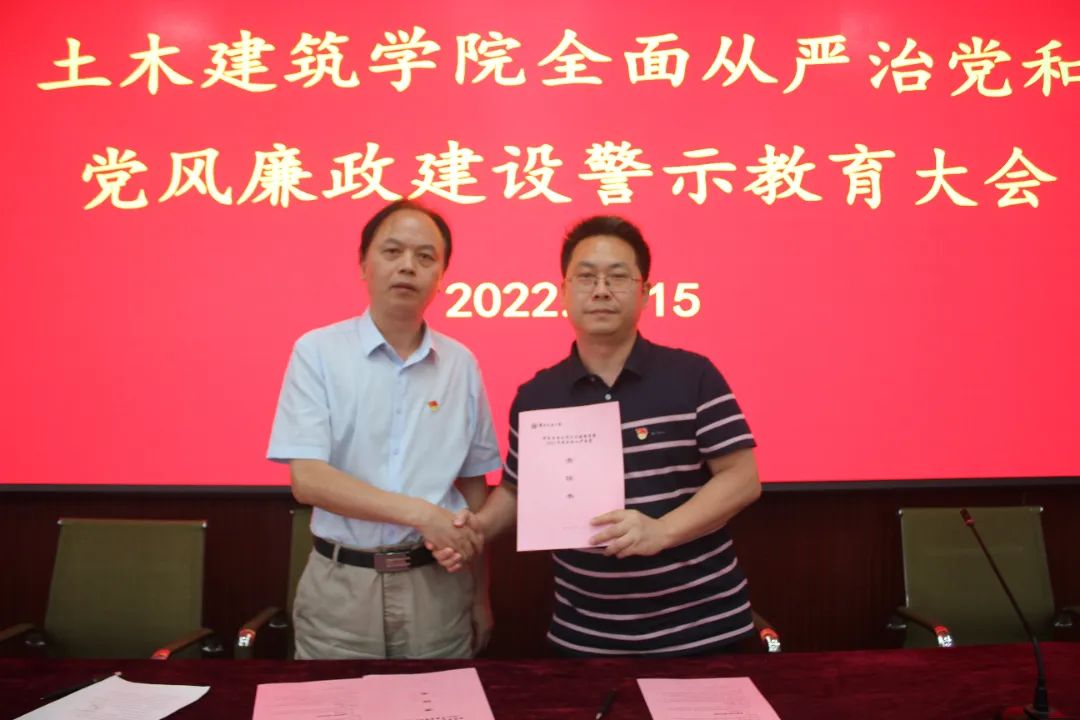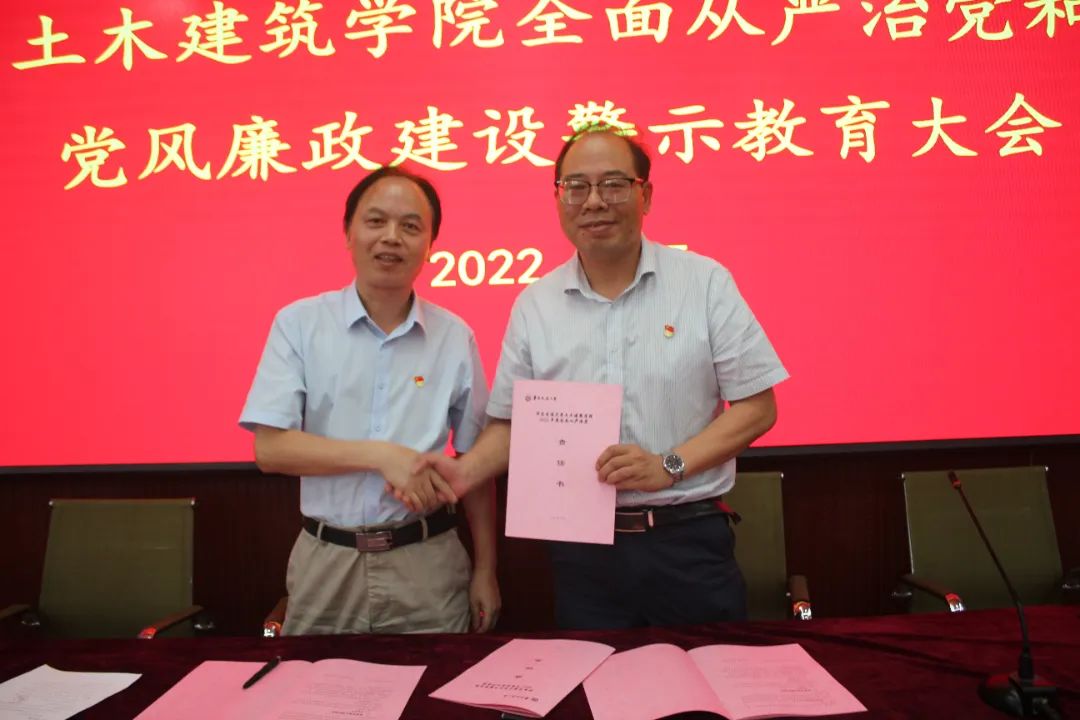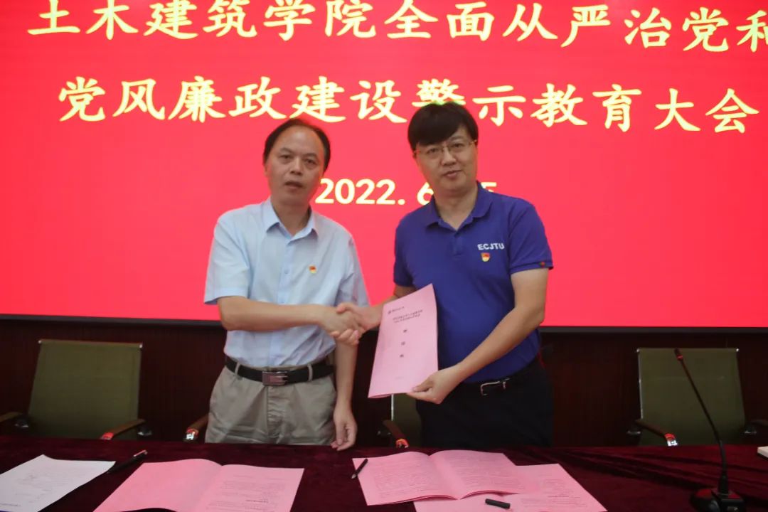 陈水生与院党委委员及班子成员、支部书记签订2022年度全面从严治党责任书。