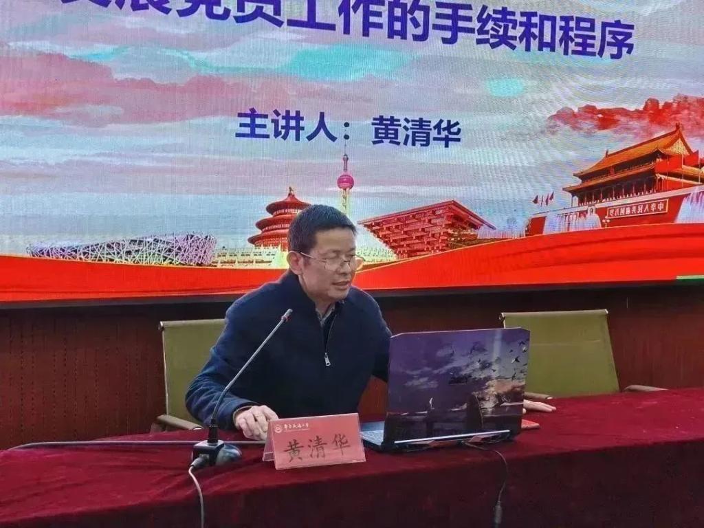 在培训中,黄清华老师从三个方面向大家阐述了发展党员工作的手续和程序,分别为端正入党动机、按照党员标准严格要求自己、严格履行党章规定的入党手续。他强调,学习掌握党的基本理论和基本知识,承认党的纲领和章程,具备较高的思想政治素质,是加入党组织的重要条件。每一位要求入党的积极分子都应明白,入党的真正目的是为人民服务,自觉为党的路线和纲领而奋斗。整场报告引经据典,思想深刻,旗帜鲜明,鼓舞人心。