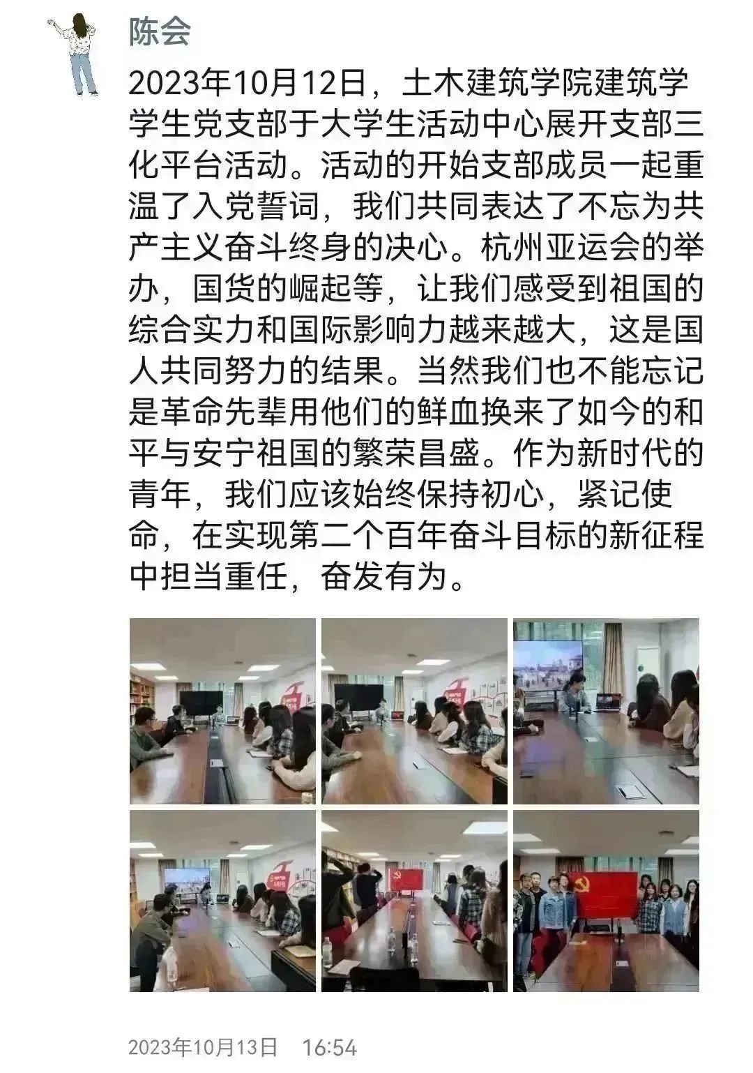近日,建筑学学生党支部在三化平台开展一次以“奋进新时代”为主题的主题党日活动,活动内容主要有四项: