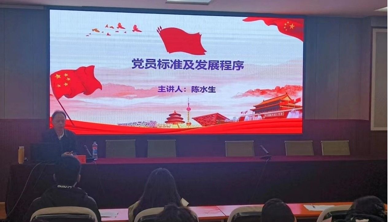 党委书记陈水生老师主讲《党员标准及发展程序》。