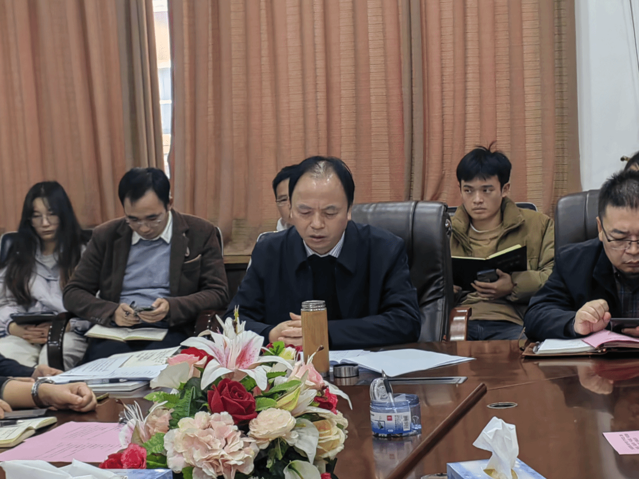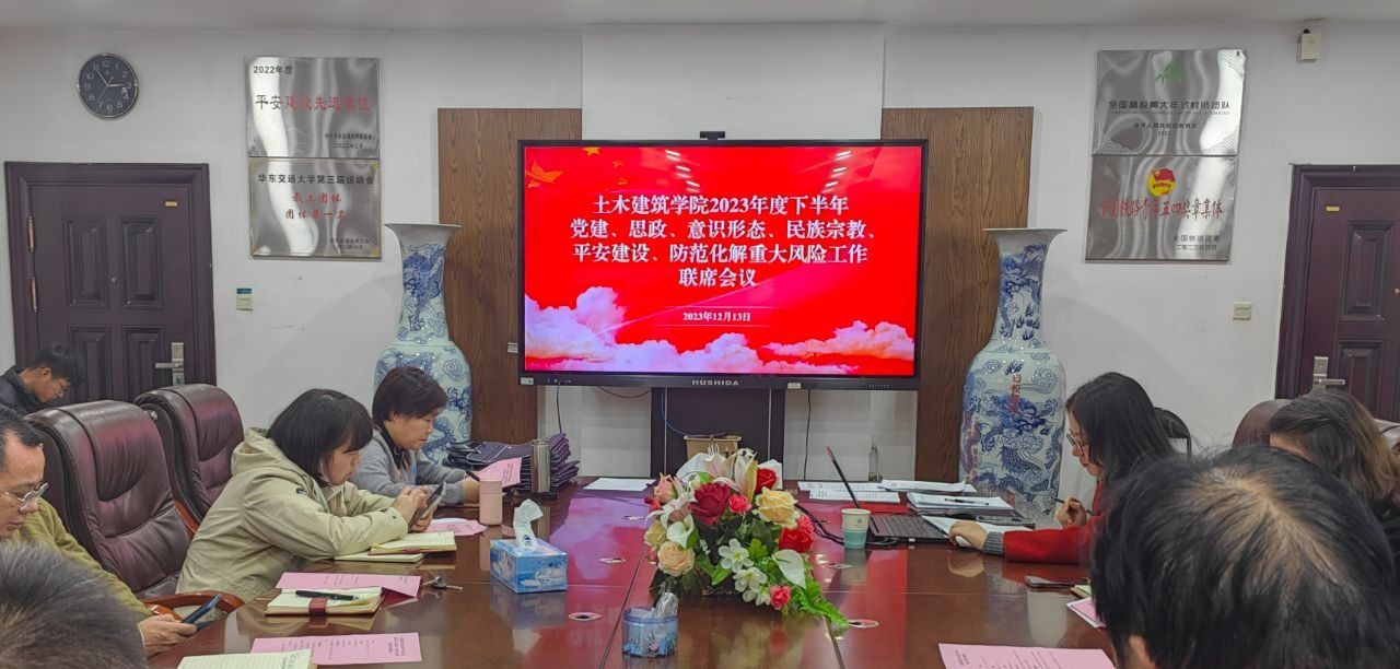 于12月13日下午召开党建、思政、意识形态、民族宗教、平安建设、防范化解重大风险工作联席会议。学院各党委委员、院班子成员、各党支部书记及全体辅导员参加会议,院党委书记陈水生主持会议。