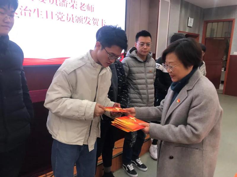 潘荣老师陪支部党员一同过政治生日,并颁发生日贺卡。随后以微党课的形式,分享“学习中央全面依法治国工作会议”内容,结束后,潘荣老师走下讲台,走到支部党员身边,亲切讲述到在疫情期间,涌现出无数的人民英雄,他们无私奉献,他们口中时常喊道“我是一名共产党员,让我先上”的英雄事迹。希望支部党员能在今后学习生活中,永葆党员的先进性。