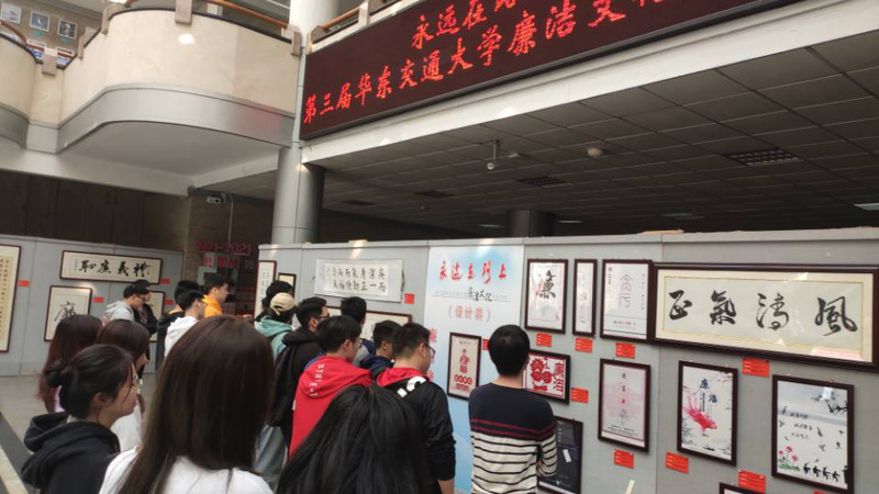 廉洁文化作品展,在参观的过程中,大家积极的讨论各个作品之中对于廉洁的诠释手法,以及作品中蕴含的劝诫和警告意味的表达。