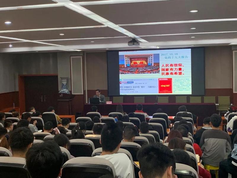 党课伊始,黄老师以习近平总书记在党的十九大报告中提到的“人民有信仰,国家有力量,民族有希望”三句话为核心,结合中国近现代史、中国革命史对这三句话进行了深刻的解读,引导同学树立正确的历史观、民族观、国家观、文化观。