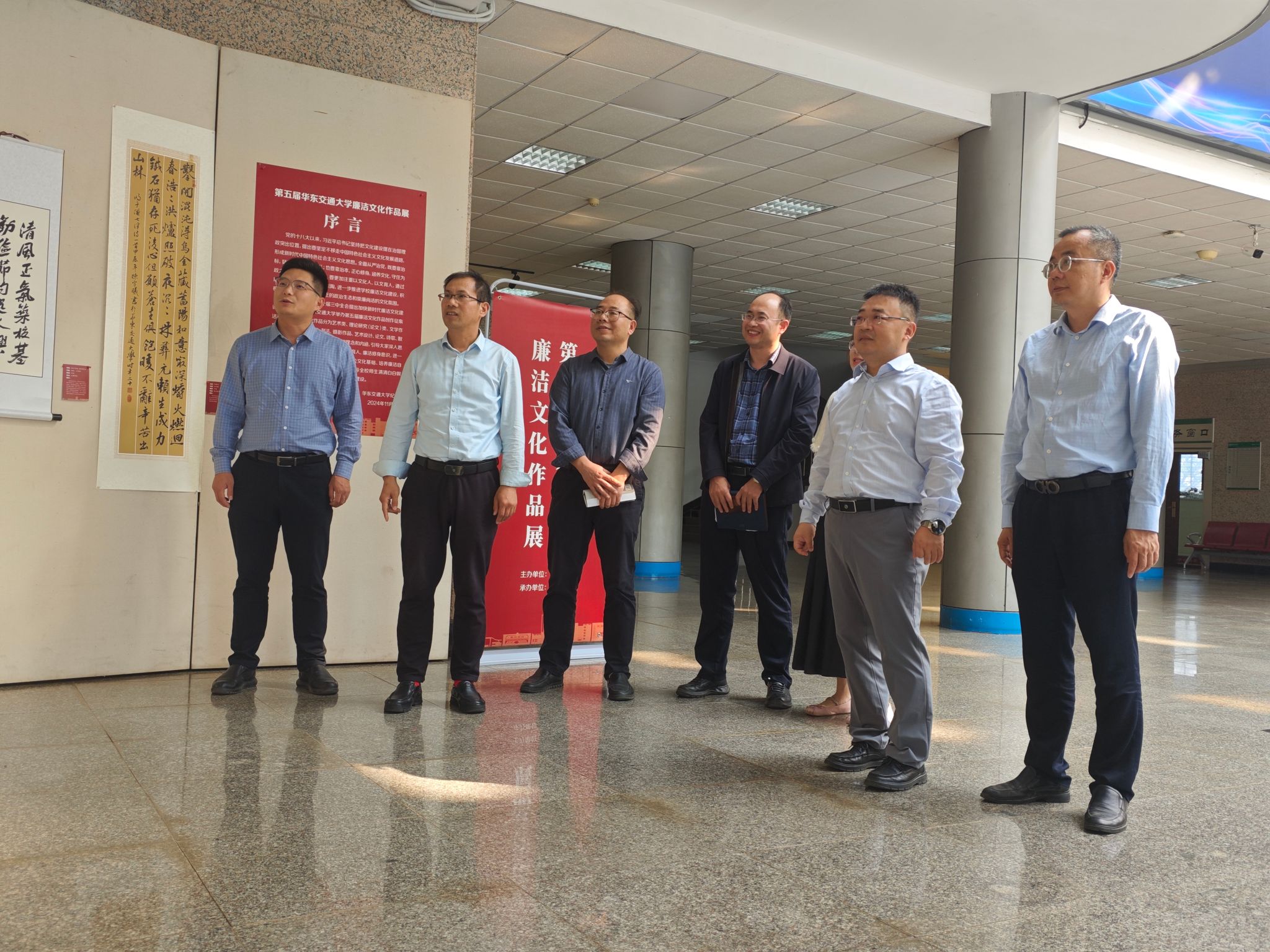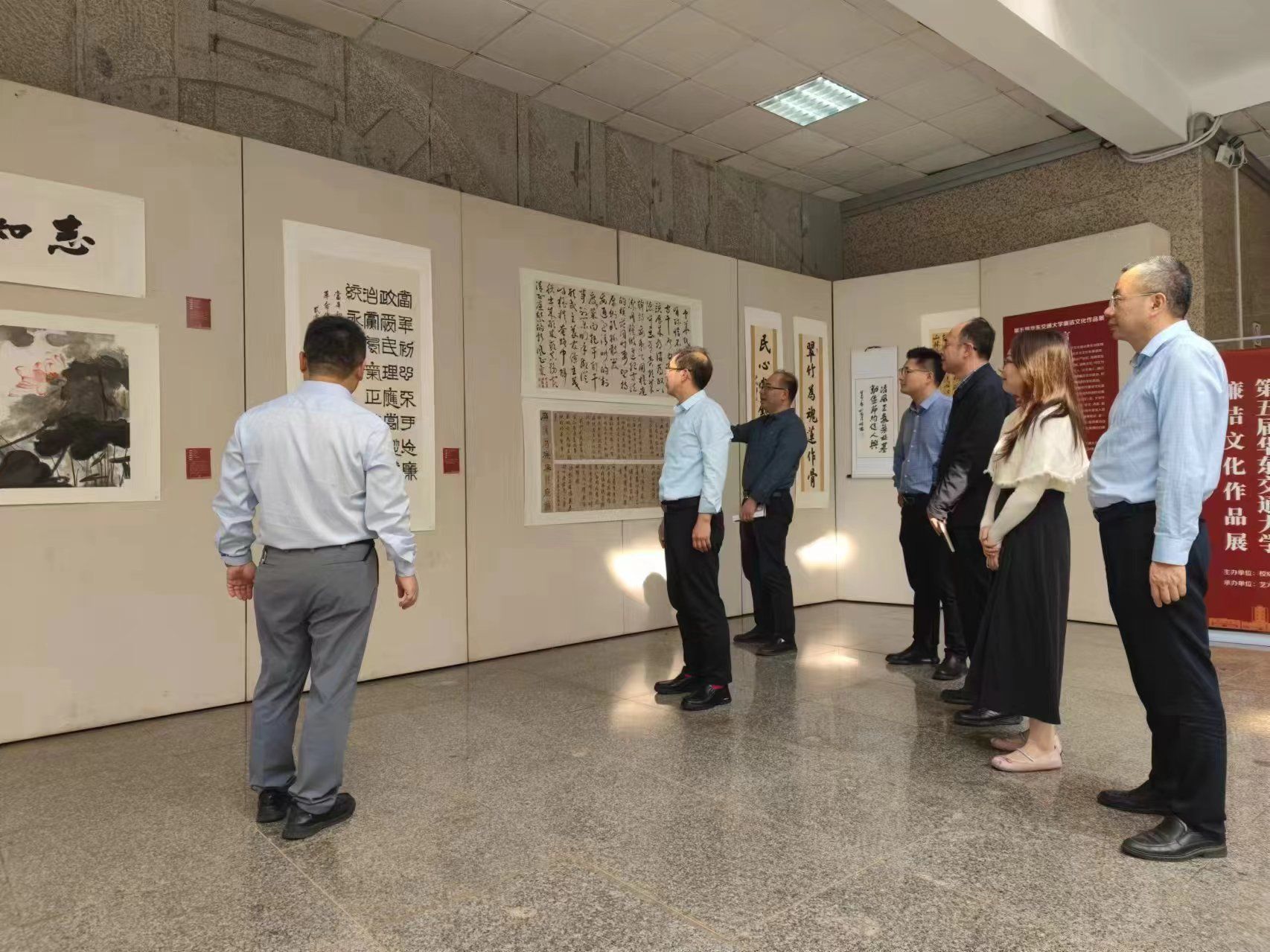 党委委员集中在教八栋一楼大厅参观第五届廉洁文化作品展。