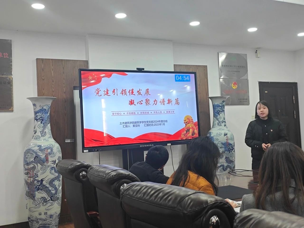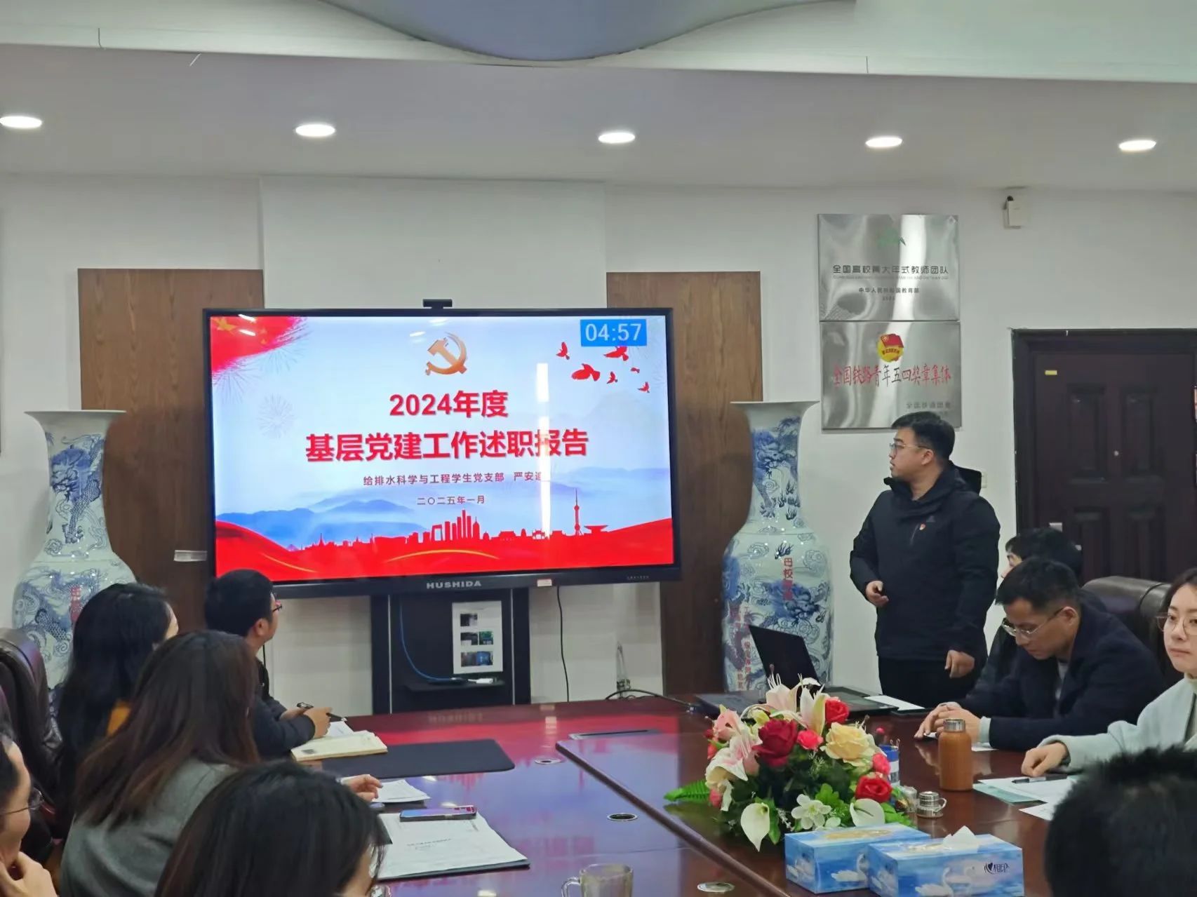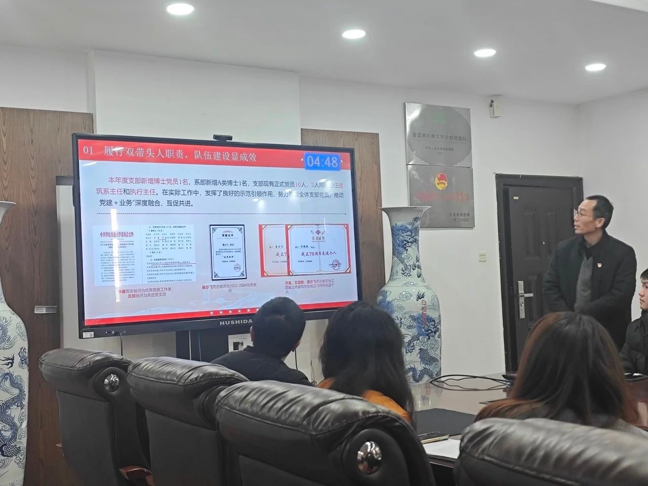 院党委书记刘永胜对各党支部述职情况进行点评,他充分肯定了过去一年各党支部的工作,同时也指出了一些问题,如党建与业务工作融合度还不够高等。他强调,2025年,各支部要坚持把政治建设摆在首位,不断增强“四个意识”、坚定“四个自信”、做到“两个维护”,持续深入推进“火车头”党建提升工程(升级版),擦亮“砼心圆”党建品牌,鼓励各党支部积极探索打造“一支一项”,在样板党支部建设上不断发力,以高质量党建引领学院高质量发展。