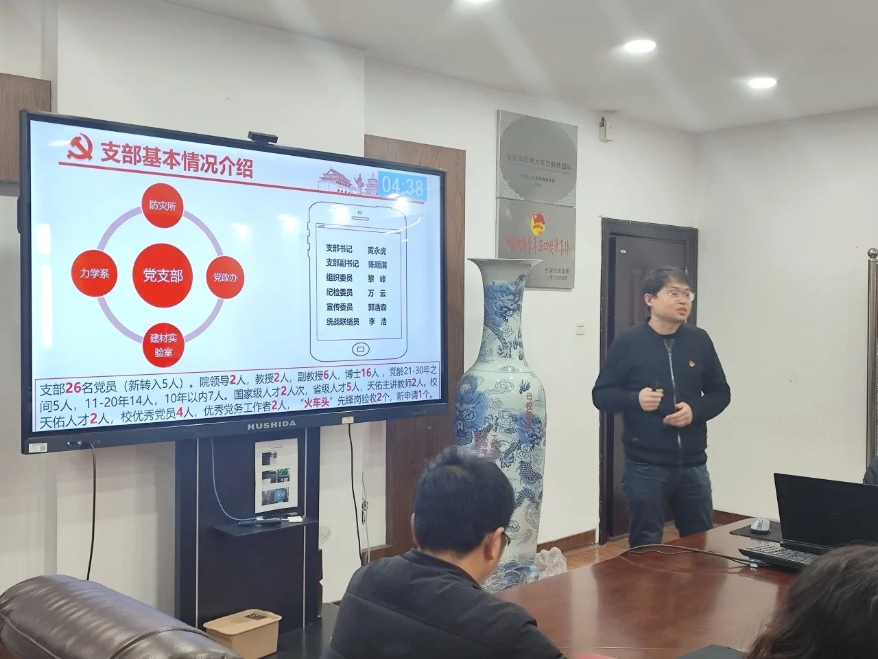 院党委副书记郑轶就学院党建、思政、意识形态、民族宗教、平安建设、防范化解重大风险工作做综合分析报告。岩土道路工程教工党支部书记雷祖祥、建筑学教工党支部书记李晨结合工作实际作交流发言。