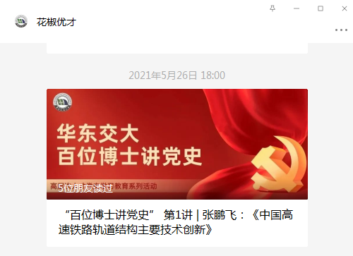 举行“百位博士讲党史”活动,陆续在“花椒优才”微信公众号推出了张鹏飞、黄大维两位老师的课程展播。
