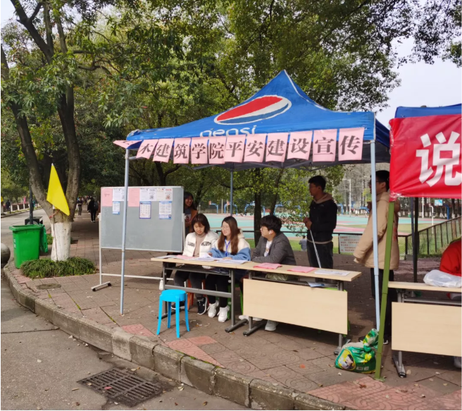 土建学院学生会学生权益部在2021年3月13日在南区一食堂门口开展了一场“平安建设进校园,为青春保驾护航”的宣传活动。