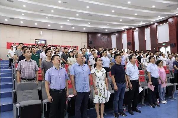 院党委组织员万雯怡领誓,重温入党誓词暨新发展党员宣誓。