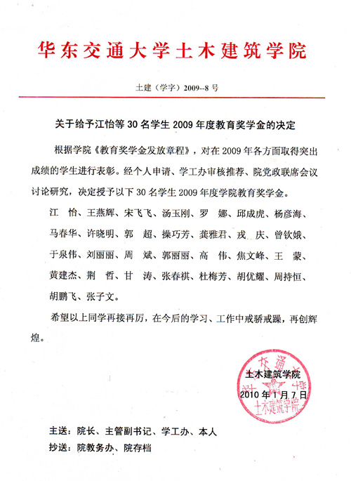 2009教育基金奖金签收单