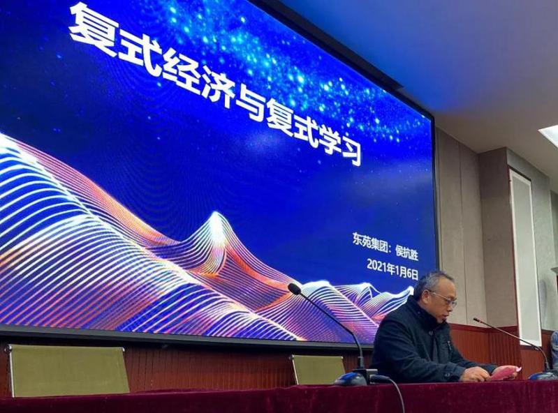 报告内容共分三个部分:疫情与变局、“复式经济”和“复式学习”。在疫情与变局部分,侯董向广大师生分析了新冠疫情对各行各业的影响,新冠疫情对工作和生活方式带来的新改变,疫情加快了人工智能、5G等“新基建”的推进速度等方面内容。在“复式经济”部分,侯董比较分析了中国特色社会主义同西方自由经济的差异,具体比较了中国、美国、俄罗斯三国的经济体系差异,指出中国的“复式经济”以“政府+市场”的“二人转”模式,将各种经济要素化繁就简,造就了中国经济的崛起,指出中国特色社会主义政治、经济制度具有无比的优越性。就当前中国经济倡导的“双循环”模式,侯董向大家介绍:“内循环为主”,绝非是应对美国打压的权宜之计,而是在疫情冲击和全球秩序变化下,整个中国经济实现高质量发展的国策调整。在“内循环”中,侯董重点分享了城市群建设、脱贫攻坚、乡村振兴战略等三方面内容。就“外循环”等相关内容,侯董从“外循环”的开端—中国加入WTO讲解开始,分享了国家“一带一路”倡议、区域全面经济伙伴关系(RCEP)和中欧投资协定等最新内容和签订始末。在“复式学习”部分,侯董就自身学习经历,向大家倡导要“复式学习”,即专业课学习与社会实践要齐头并进,并建议大家要终身开展“复式学习”,并以图片形式展示了漫蛙漫画