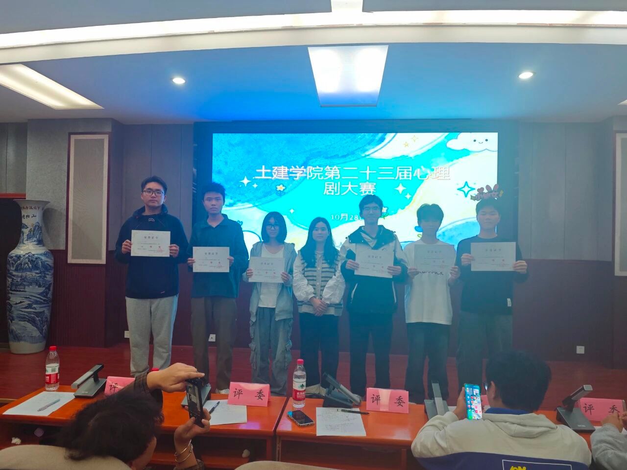 为了帮助大一新生更加了解自己的心理活动和内心世界,提高同学们的交流与合作,陪伴他们健康成长。10月28日晚上7点,土建学院心素会在土建200开展心理情景剧大赛,学院心理辅导员汪晶晶老师,汪满老师,校心联主席王泽梁,研究生学长李云帆,研会主席练文静等出席此次决赛并担当评委。