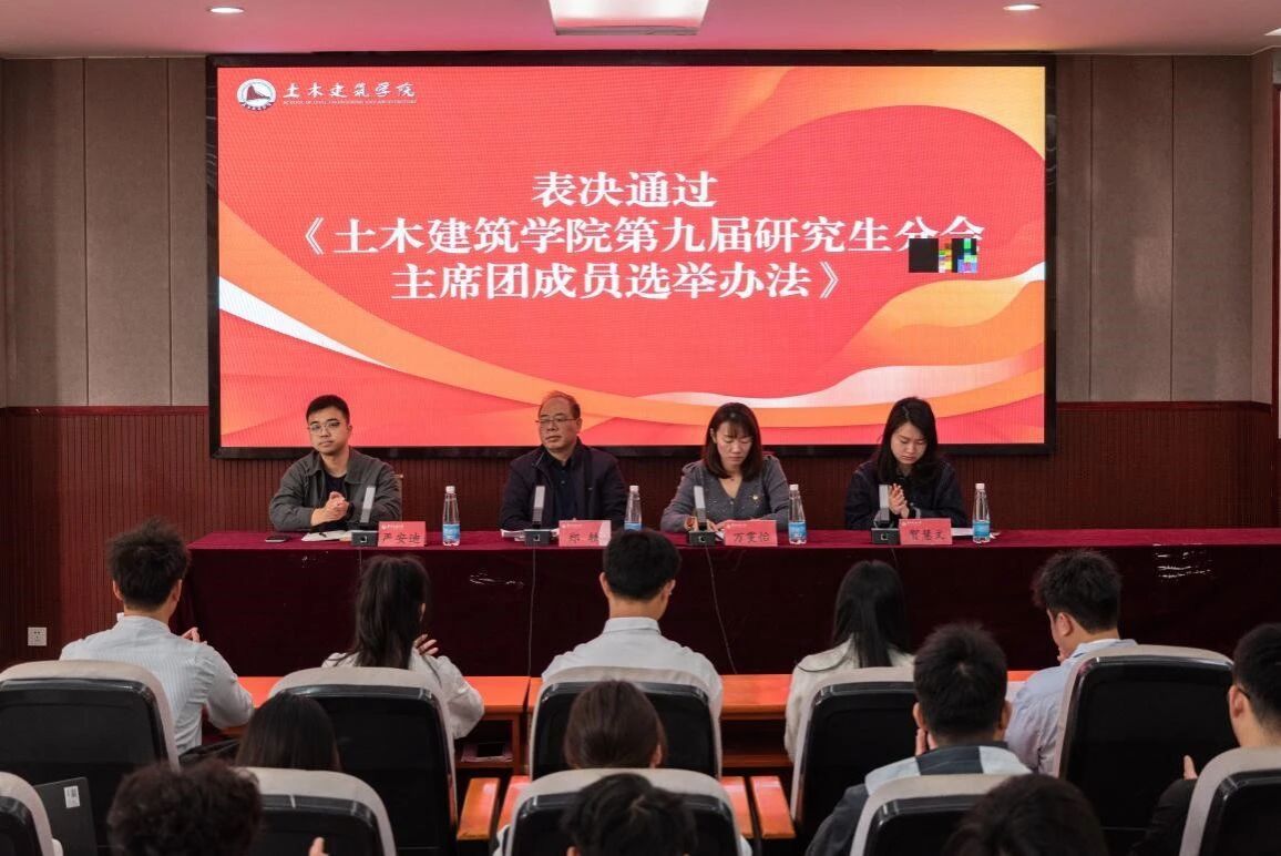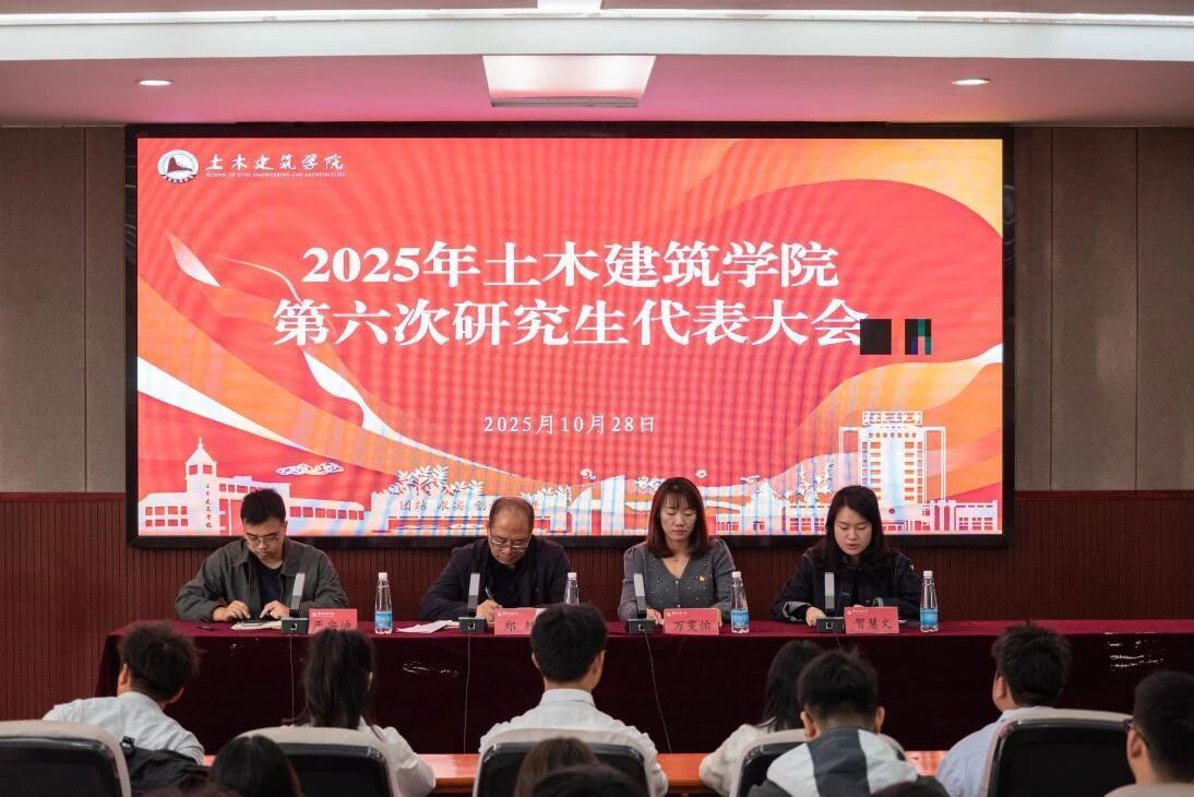 第六次研究生代表大会在土建楼200报告厅顺利召开。学院党委副书记郑轶、团委书记万雯怡、团委兼职副书记严安迪出席本次会议,第九届研究生分会成员以及研究生代表共同参会,院团委副书记贺慧文主持会议。