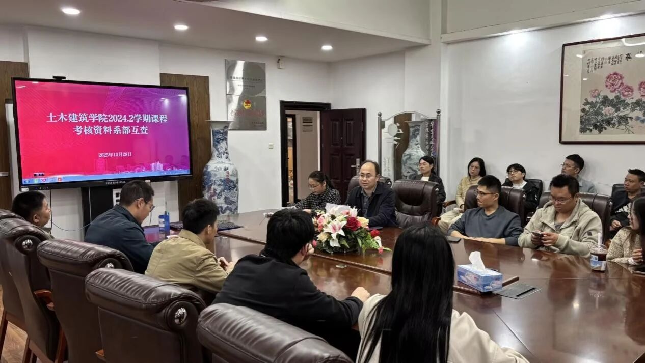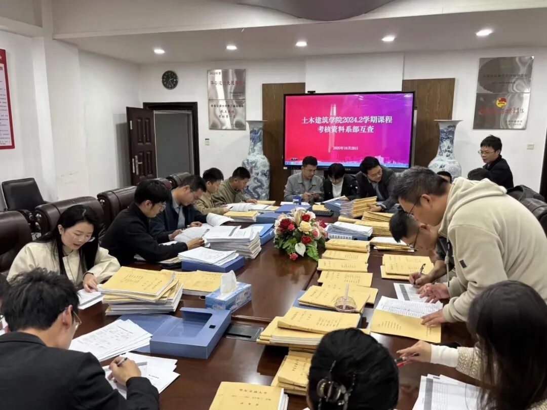 于教九栋土建楼302会议室组织进行了本科课程考核资料的跨系互查。此次检查致力于系统检验课程考核各个环节的规范执行与实际质量,从而促进学院教学管理效能的整体提升。各系部积极响应,选派教师代表全程参与。