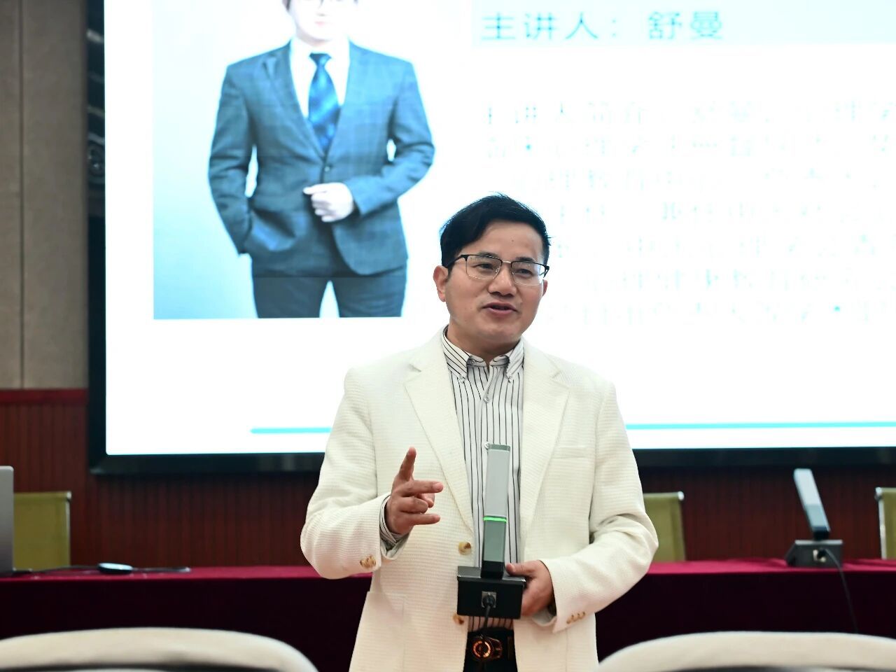 会上,舒曼借自身名字拆解传递成长哲思:“舒”字“舍”“予”之意,他援引《道德经》“圣人不积,既以为人己愈有,既以与人己愈多”的箴言,倡导教师在生活与教学中秉持换位思考、共情他人的态度,以此拓宽认知视野;“曼”字则引申为“慢”,寄语青年教师于忙碌中沉心静气,在缓行细思中探寻解决问题的路径。同时,他从“你笑起来真好看,越看越好看”中提炼成长启示,指出“笑”是主动行为,“好看”是心态投射,行为转变终将带动心态革新,进而强调成长的关键在于改变自身而非苛求他人,个人对世界的态度往往决定了世界对自身的回应。