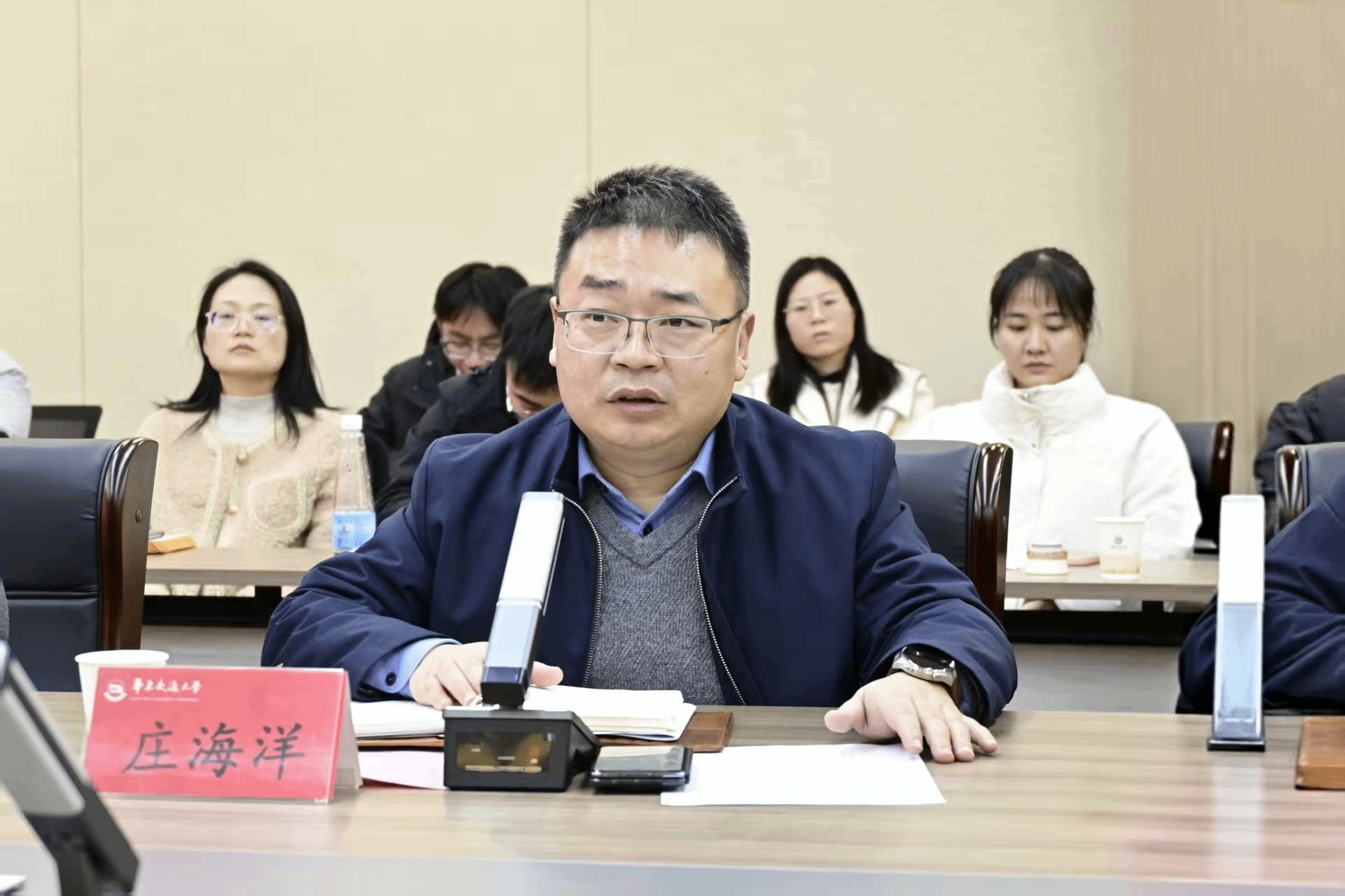 在32栋321会议室召开2025年度班主任工作交流座谈会。学院院长庄海洋、党委副书记郑轶、副院长陈莘莘以及各教学系主任、班主任代表、全体辅导员参加会议。会议由院学工办主任兼团委书记万雯怡主持。