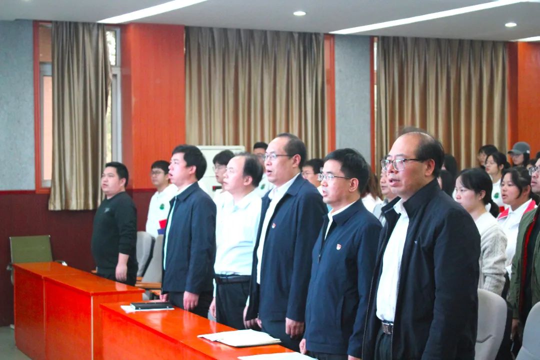 罗文俊指出,中国共产党第二十次全国代表大会,是在全党全国各族人民迈上全面建设社会主义现代化国家新征程、向第二个百年奋斗目标进军的关键时刻召开的一次十分重要的大会,是一次高举旗帜、凝聚力量、团结奋进的大会。希望同学们以“十年变迁”为引,共乘“国家发展”之风,牢记“使命在肩”的誓言,勇担“大国复兴”的重任,在时代潮头站好“C位”,矢志不渝求学报国,践行铁人铁军的铮铮誓言