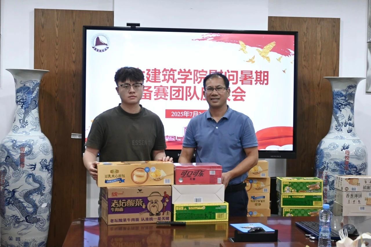 会后,刘永胜、郑轶向备赛团队发放了慰问品。小小礼物,情深意切,承载着学院的温暖祝福与殷殷期盼。
