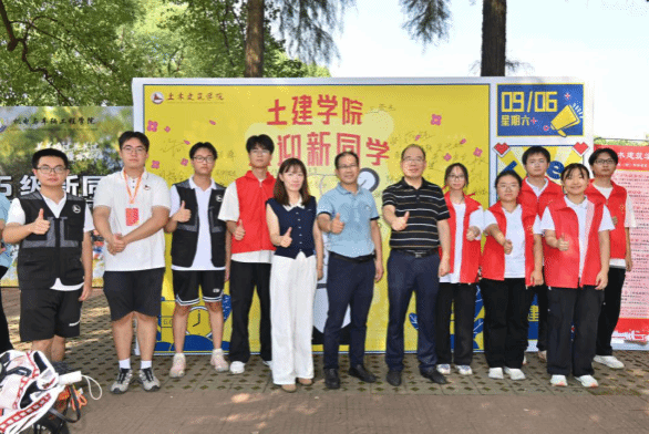 院党委书记刘永胜检查迎新工作并与迎新工作人员合影