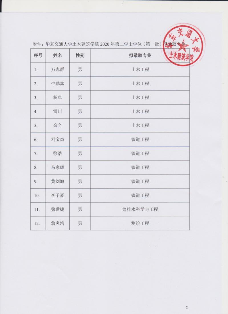 漫蛙漫画 2020年第二学士学位招生(第一批)拟录取名单