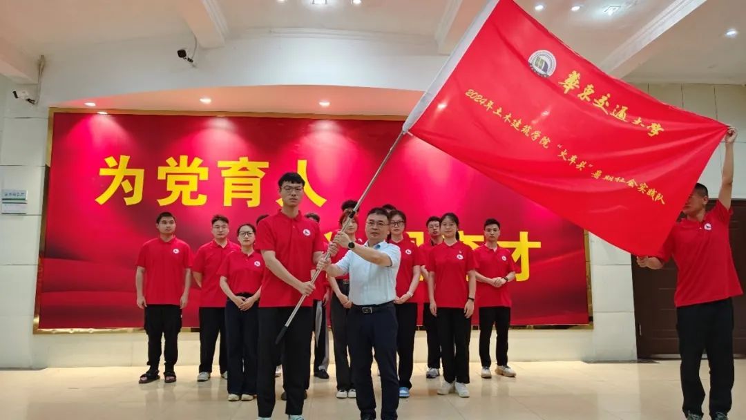 在庄严的氛围中,庄海洋为出征的实践队进行授旗,表达了对团队的殷切期望与深情嘱托。