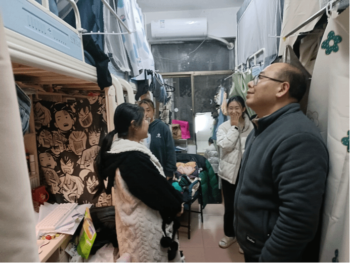 12月26-27日,土建学院党委副书记郑轶带队辅导员检查所带班级学生寝室,重点检查寝室用电安全、消防安全、卫生状况。研究生辅导员和研分会开展研究生宿舍卫生、安全大检查。