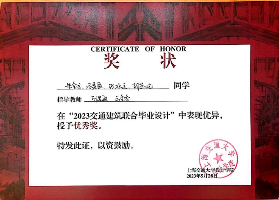 颁奖典礼暨闭幕式在设计大楼一楼进行。上海交通大学设计学院党委书记张丹丹对参与本次活动的各高校师生表示热烈欢迎,对莘莘学子表达了美好的祝愿。随后,各位专家为学生颁发获奖奖状(图7-图8),并进行合影。最后,长安大学的唐咏东老师代表参会师生表达了对本届联合毕设承办方——上海交通大学的感谢,并宣布下一届联合毕设由长安大学承办,对各兄弟院校表达了热烈欢迎。