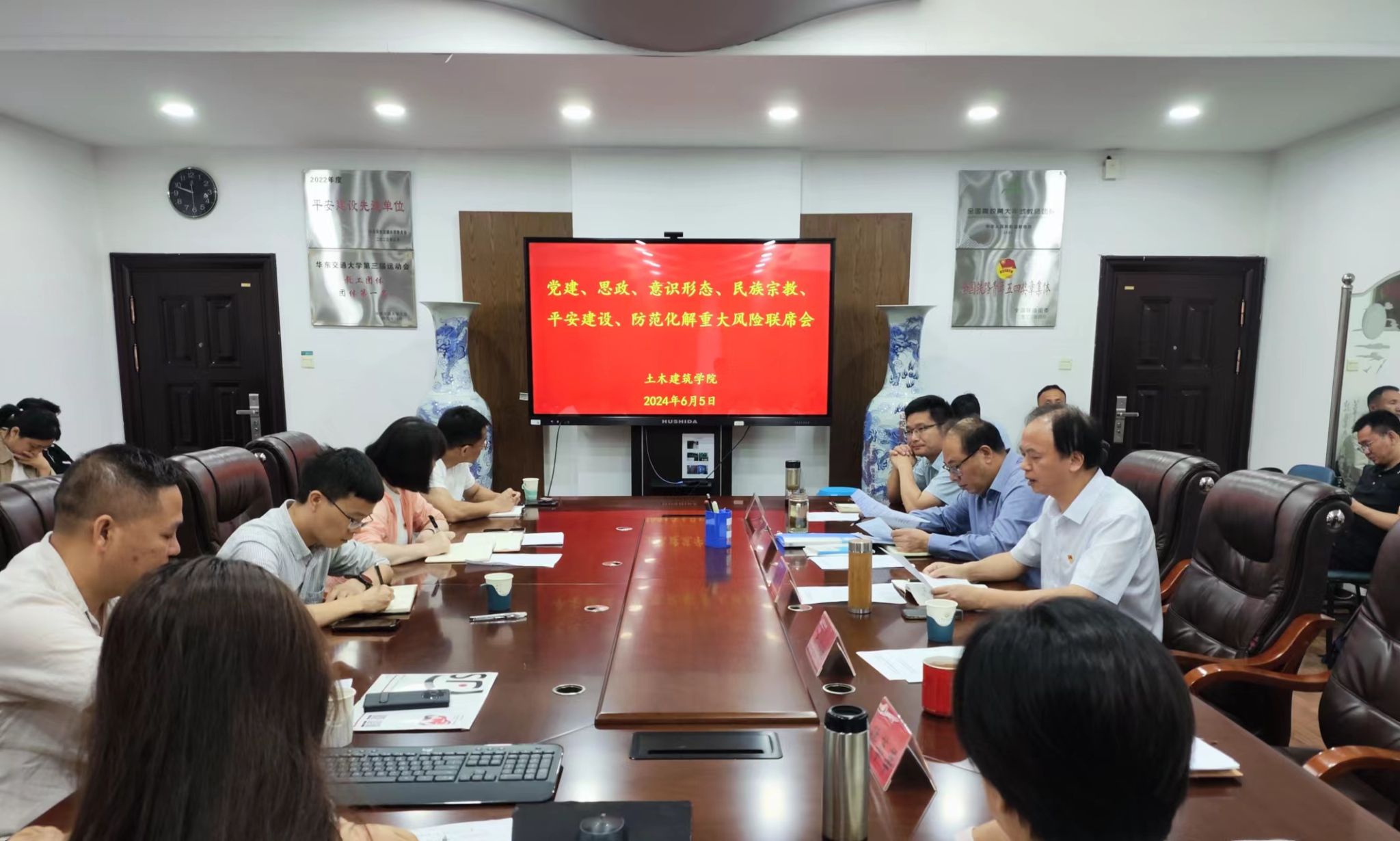 土建学院召开2024年上半年党建、思政、意识形态、民族宗教、平安建设、防范化解重大风险工作联席会议